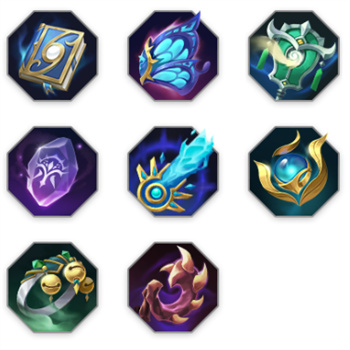 蔷薇箭袋、刀锋之翼、绯红之刺、狂放之击、预言灵刃、神圣救赎、迷雾铃、憎恨碎片