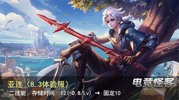 亚连二技能的储存CD从之前的基础12s,每升一级减少0.8s,改成了固定10s。前期的时候CD增加,后期CD相比之前会多一点,总体来说算是平调吧。