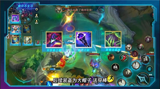 之后鞋子合成中娅沙漏,或者石像鬼板甲增加自保能力。后续装备为灭世者之帽、虚空之杖、莫雷洛秘典。这套装备总体效果爆发高,收割能力强,后期一套技能就能瞬秒C位!