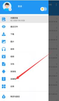 第三步:点击左上方三道杠的符号,在列表中选择压缩包这个选项。