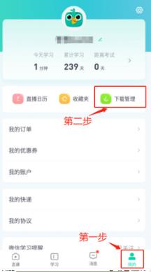 7. 在app【我的】-【下载管理】里面可以查询到下载完成和正在下载的课程:
