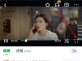 1、打开爱奇艺视频,点击视频右下角的全屏图标。