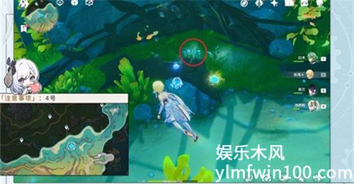 4、在地图右侧中间位置,通过右边中间锚点去,只要攻击一条鳗鱼即可。