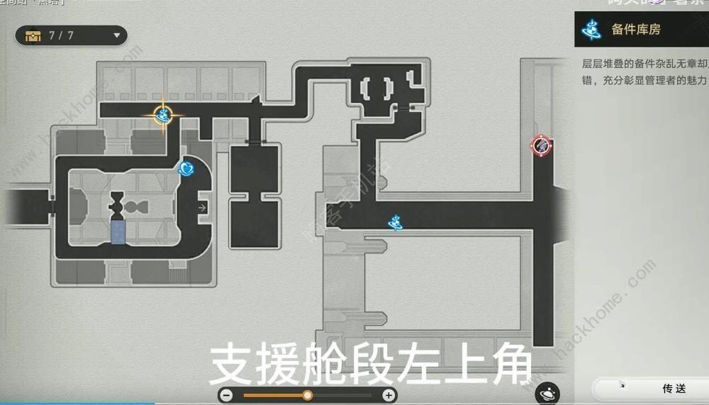 具体的位置内容,就是如下图所示哦,备件库房,然后支援舱段的左上角呢。