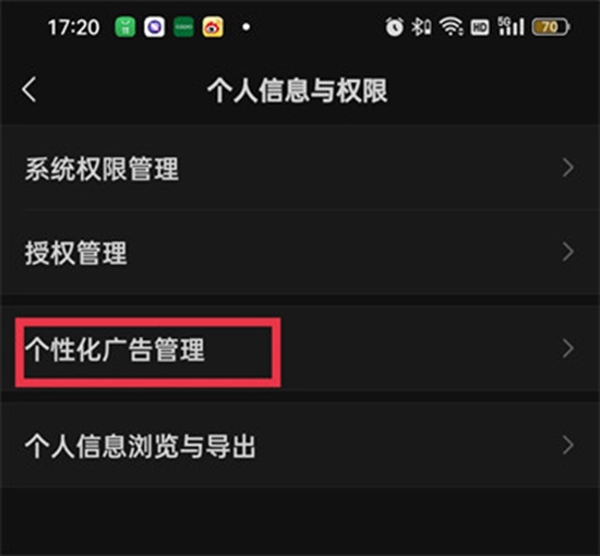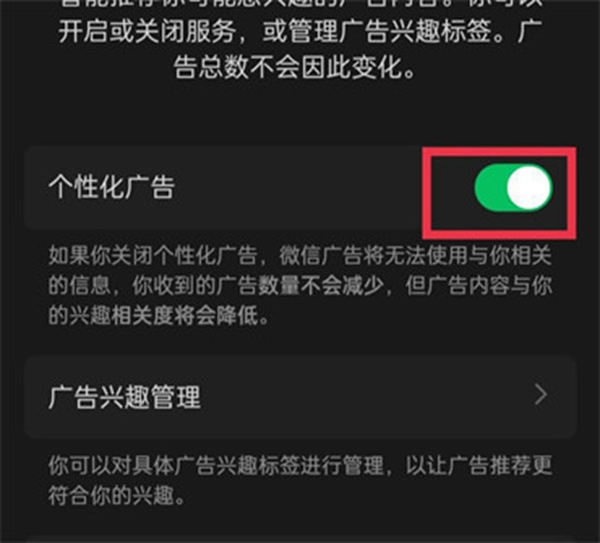 5.进入之后会看到【个性化广告】我们点击它后面的绿色的标志,关闭即可。