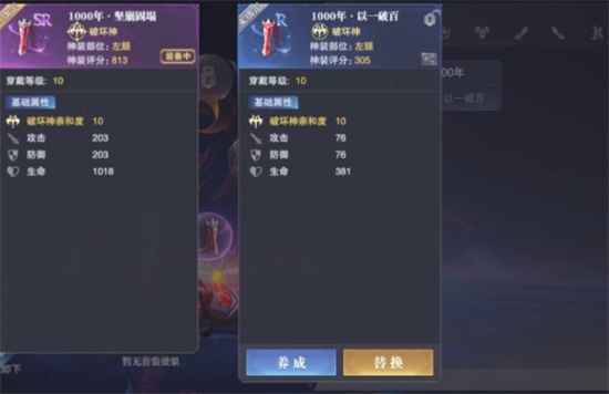 神装是可以培养的,低品质神装可以拿来给高品质神装提升年份,年份越高属性越多 对应神位亲和度也越高,亲和度高了还可以解锁神位天赋技能。