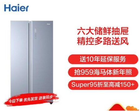 1.海尔六大储物抽屉对开门冰箱BCD-596WGHSS9DP9