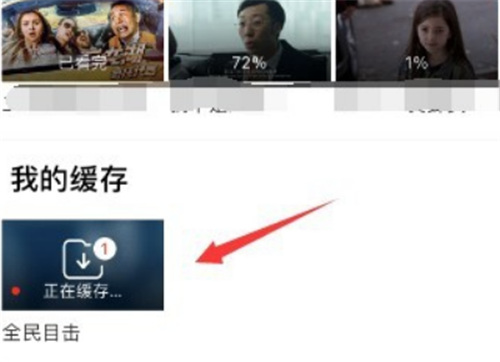 4、接着就可以看到下面查看缓存的按钮后面出现了一个红色1字,说明该视频已经进入缓存队列了,点击该按钮。击该视频