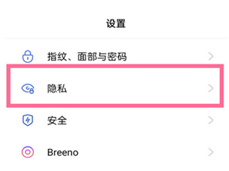 第一步:打开手机设置,点击隐私。