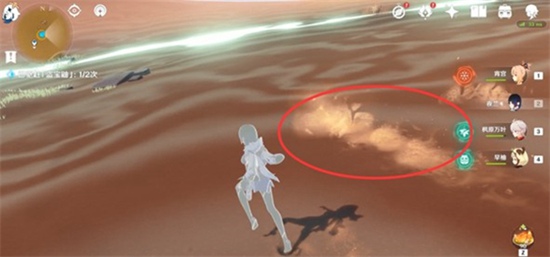 一、在盗宝鼬潜入地下后开启元素视野。如下图所示,开启后踪迹会变得清晰。