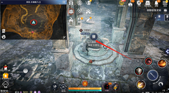 -柯扎卡祭坛:柯扎卡神殿入口,下图红色圆圈为大致位置,箭头指引为道具所在