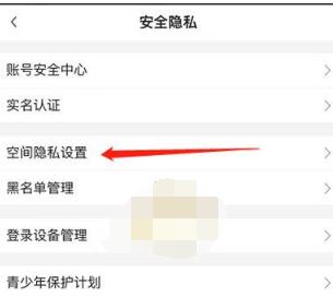 3、在隐私设置的页面里,用户需要找到【空间隐私设置】的功能选项,然后点击并进入相关页面中。