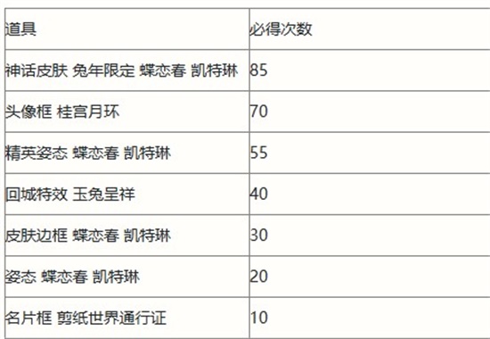累计开启一定次数剪春宝箱必得兔年限定奖励,累计开启85次必得神话皮肤:兔年限定 蝶恋春 凯特琳皮肤