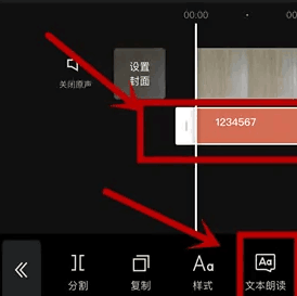 4、输入配音文字后,选中它,并点击文本朗读,选择机器人版本。
