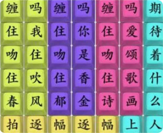 2、这一关是连歌词的玩法,大家按照原版的歌词连接即可。前几句基本上都是竖着连接,最后一句需要横着连接,还是比较简单的