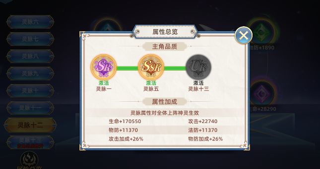 灵脉莲开启后,玩家可通过使用寒泉之石、疾风之石、灼炎之石、暗影之石、风语之石来提升相应的角色属性数值,这些灵脉材料可通过主线关卡掉落,从而来提升等级,等级提升同时也会提升角色的属性与品质,灵脉收集满后主角品质可以晋级至UR品质!