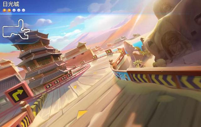 一进入赛道就能感觉到这张图和其他几张新图的画风比较不同,因为是一座隐藏在漫漫黄沙中的神秘古城,沿路都是古香古色的城楼,非常具有华夏韵味。在刚开局是几个非常缓和的大弯,还是断漂补气触发连喷,几个小连喷之后就可以攒出一个氮气了。