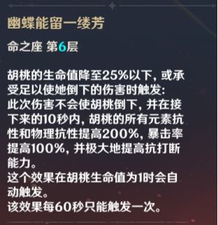 该天赋不为自己加成暴击率,而是为一些自身具备输出能力的队友补充输出,很显然这样设计是为了鼓励身为火元素角色的胡桃参与元素反应,而不是单纯的依赖自身倍率输出。