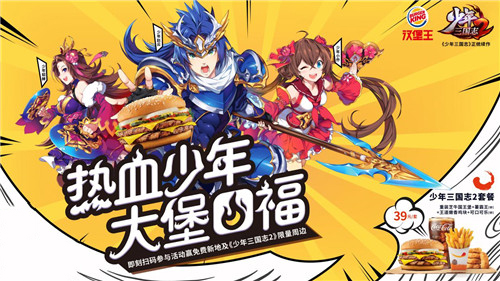 在现场不仅有令人期待的游戏内容,《少年三国志2》与“汉堡王”联名汉堡套餐也会在展台每日供应,内含“重装芝牛国王堡+薯霸王+王道嫩香鸡块+可口可乐”,玩家们可以参与小乔客栈的活动,在朋友圈中集满30个赞,就能前往展台领取超值套餐,在CJ现场大堡口福!现场的抽奖活动更是准备了夏日清凉解暑神器汉堡王新地、吕布喵背包、赵云手办等限量周边!