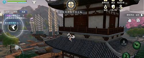 使用轻功到达塔尖就可以看到描绘的交互键了,飞不上去的少侠可以选择一层一层往上跳。