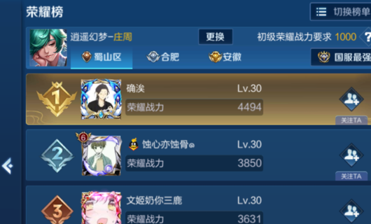 5、最后,在首页左侧找到荣耀榜,就可以看到自己在定位地区的排名了。