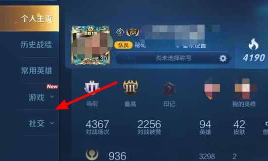 2、然后,进入资料界面,找到左侧的“社交”的选项。