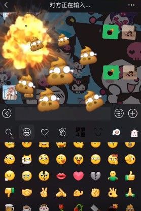 这是一个互动玩法,也就是说至少需要两个人才能触发隐藏特效表情。具体来说,想要触发“炸屎”特效,就需要先发一个“便便”表情,再发一个“炸弹”表情,即可触发“炸屎”特效。