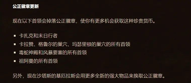 与原始TBC的祖阿曼版本不同, TBC怀旧服P4阶段除了卡拉赞和祖阿曼外,还新增了T4、T5团本以及世界BOSS的公正徽章掉落,不过公告中并没有说明公正徽章掉落数量,为此小编查询了2.43版本数据库,数据库显示除玛瑟里顿和格鲁尔掉落3枚公正徽章外,其他25人团本BOSS均只掉落2枚公正徽章,世界BOSS在原版TBC不掉落公正徽章,怀旧服掉几个未知。