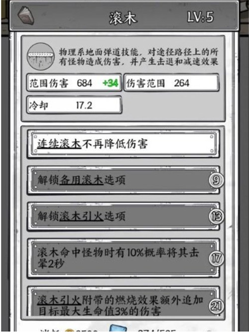 2、后面可以考虑减速怪物4s、击退怪物、滚木碎冰、加伤害。