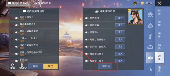 4.点击【一键更换】,出现对话框是否要将局内消息语音替换为小团团语音,点击确定即可完成设置。
