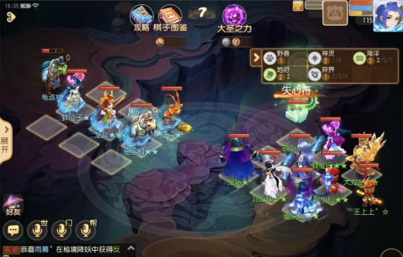 打法思路:大圣之力先选加能量,优先合成点杀棋子或者封印(歌小谣,野兽流派,神灵流派),