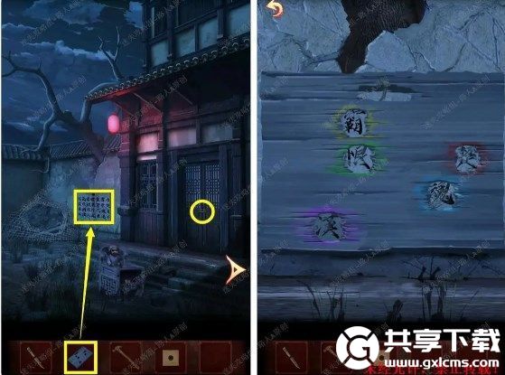 4.将【带孔木板】挂在墙壁的钉子上,根据线索,输入密码【楚霸魂恨汉】打开门锁。