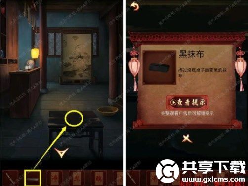 13.用【黑抹布】擦桌子,输入密码【唱打做念】打开木盒,取得【木牌生】。