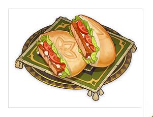 柯莱的特色料理。松软的饼皮内塞满了营养丰富的配菜,方便携带又管饱。柯莱补充说,里面夹着的肉排名为「巡林员烤肉!」。嗯——不禁让人联想起一个红色的活泼身影…这也是根植于柯莱内心深处的美好憧憬吧。