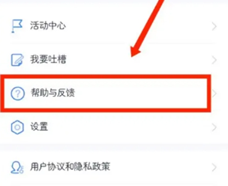 第二步我们需要在APP我的界面点击帮助与反馈。