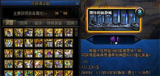 -优势:耗费“1张门票、1个角色pl”,能让至多4角色获取1~2件史诗装备。并且难度、名望门槛都比寂静城低。