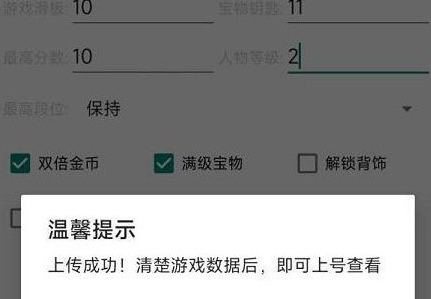 4、之后系统会提示上传成功,然后将游戏的原有数据进行清除。