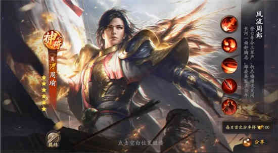 周瑜通过主动技能的爆发伤害,配合其他爆发类武将组成“动如雷震”羁绊,可以对敌方单体造成毁灭性的伤害。