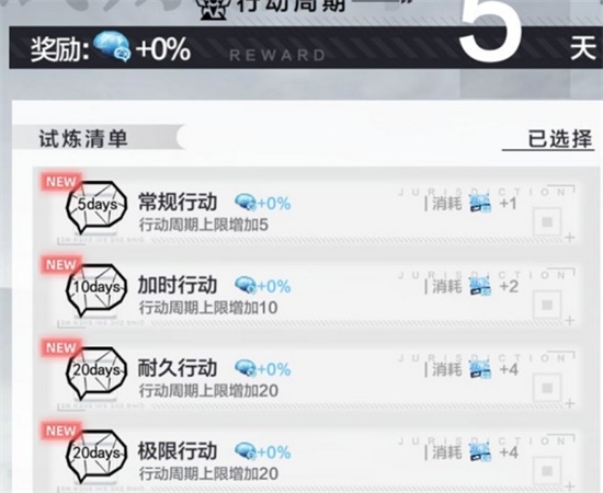 1.如果对自己的练度不自信或者觉得不好打的话,可以只选加行动周期上限的选项,下面的其他选项只加奖励,不影响最后练出来的队伍。
